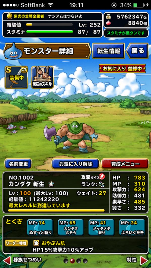 討伐とはいえSSランクなんだから、カボダダはとうこんじゃなくてくじけぬ心でも良かったと思うの。解除する特技も装備も今は十分にあるんだし。な!な!