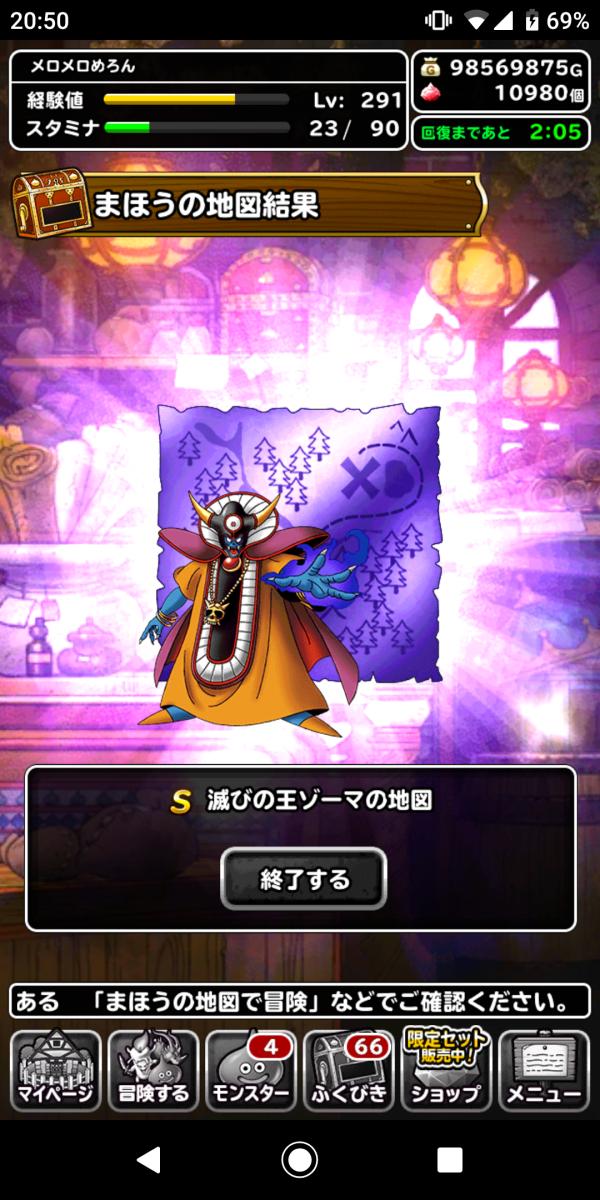 初超魔王ゲット。でも闇の種なんて無縁だったから20個しか無いぜ〜。