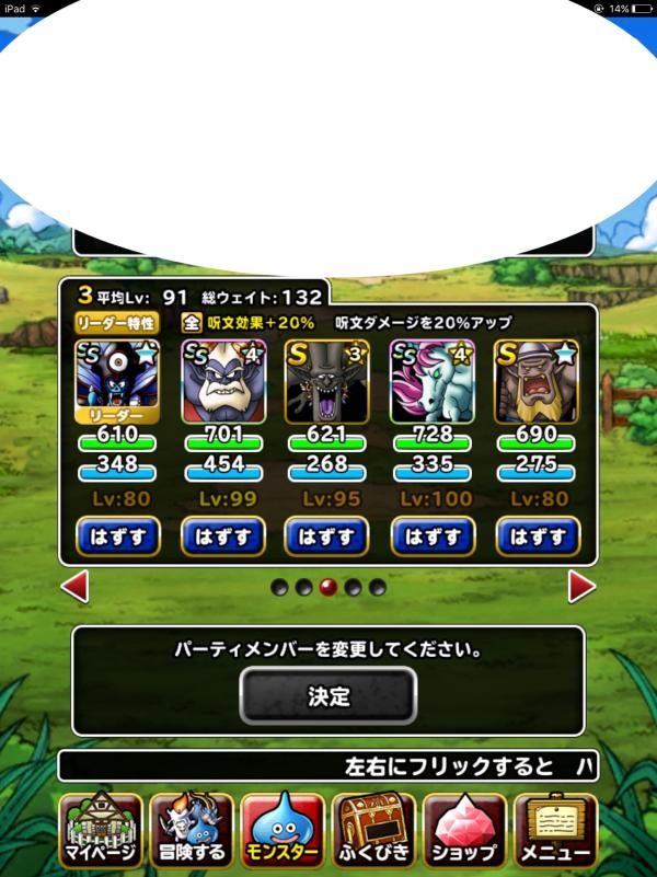 闘技場あまりやらないので外しました。MP消費激しいし無特技タマゴロン放ればマヒャド帰ってきますしね〜。